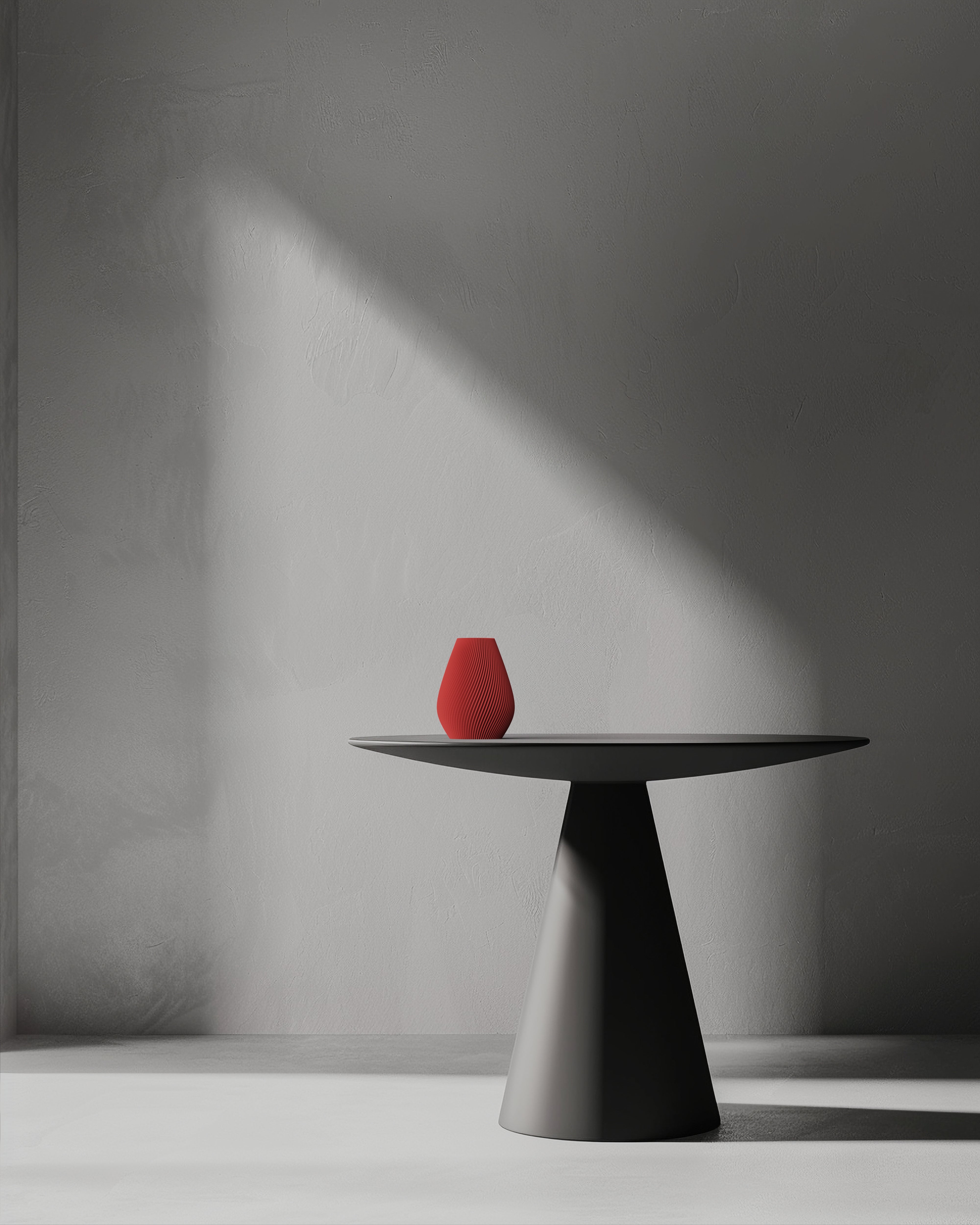 Die Wave-Kollektion vereint moderne Designvasen und Übertöpfe, die im 3D-Druck aus nachhaltigem PLA gefertigt werden. Charakteristisch für alle Modelle ist die fließende Wellenstruktur, die Ruhe, Bewegung und Klarheit verbindet.